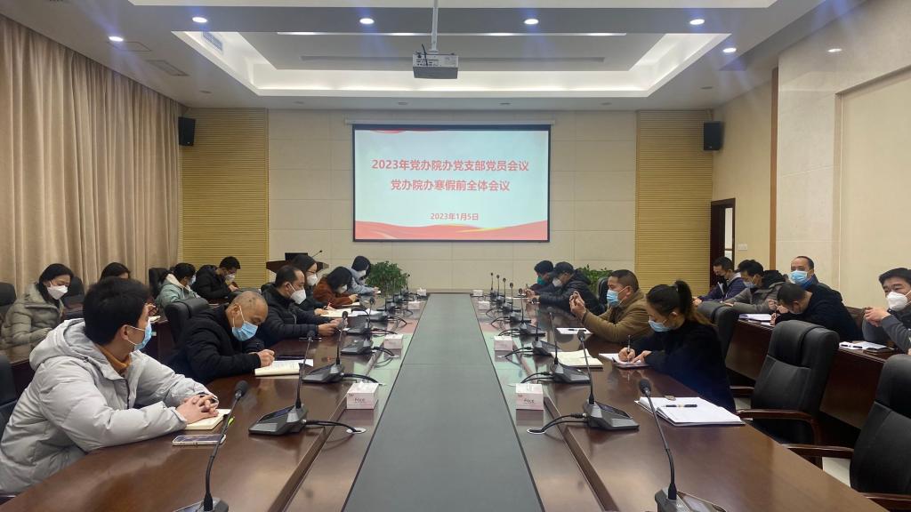 为进一步深入学习贯彻落实党的二十大精神,1月5日上午,党办院办召开党支部学习会和寒假前部门工作会议,会议由党办院办主任、党支部书记彭靖主持。