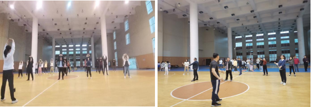 最后,全体人员回到学校大学生活动中心一楼体育馆,学习传统民族体育运动。大家排列整齐,跟着国家健将级运动员、体育部王旖蔚老师学习了一套八段锦,这对于久坐办公室的党员们来说,正是一次活络身体的好机会。抛绣球是广西特有的少数民族体育项目,深受党员和同学们的喜爱,大家全神贯注,跟着体育部黄鹏老师认真练习,绣球投入框中后,现场响起了喝彩欢呼声。此次锻炼,不仅让大家对少数民族传统体育项目有了进一步了解,更提升了大家积极参与体育运动,增强体质体魄,快乐团结工作的认识和决心。