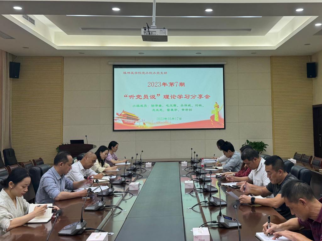 10月17日下午,党办院办党支部在明德楼502会议室召开2023年第七期“听党员说”理论学习分享会,第二小组成员毛玉霞同志主持学习分享会,支部全体党员同志参加会议。