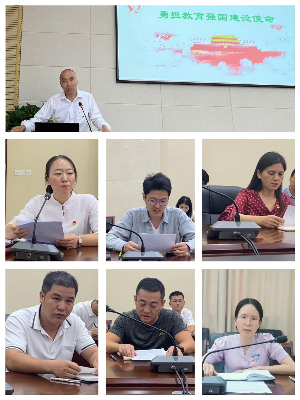 党支部书记彭靖作总结发言。他强调,全体党员干部要牢记“为党育人、为国育才”教育初心使命,弘扬教育家精神,树立向先进学习的信念,扎实工作,努力提升履职能力,把“躬耕教坛、强国有我”的志向和抱负化为服务学生、服务学校建设的不竭动力。