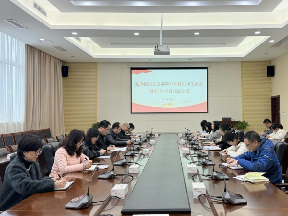 2月28日下午,党办院办党支部在临桂校区明德楼502会议室召开2024年度组织生活会,以及2025年2月的党员学习会。会议由党支部书记彭靖主持,校党委书记马献力以普通党员身份参加会议。党委组织部副部长、机关党委副书记秦丽凤到会指导。
