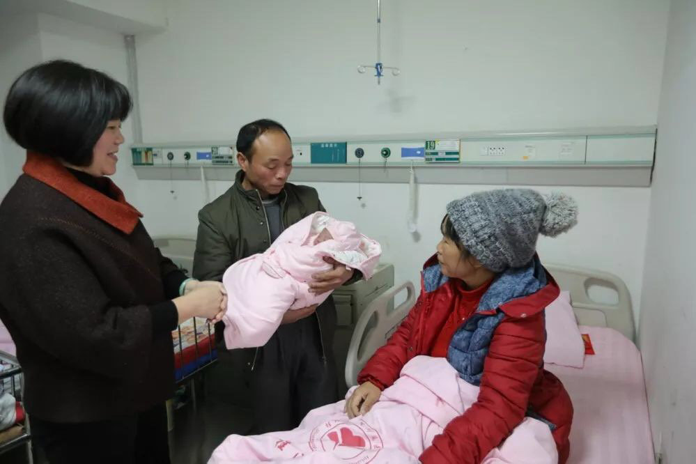 随后对于胎儿的发育、成长过程,王文燕又协调医院安排专人对接和跟踪。2018年11月21日下午5点钟左右,黄冬梅到医院做产检,医生发现有早产的征兆,马上安排她住院待产,黄冬梅打电话给王文燕,她急忙赶去医院,一直守候在产房外面,在医护人员的悉心关怀下,晚上10点45分,黄冬梅终于产下一个女婴,当王文燕把这个喜讯告诉因为在家干活而不能赶到医院陪伴的周应雄的时候,他激动得夜不能寐,第二天一大早就赶头班车到县城,转车来到医院,他说:53岁了才得这个孩子,实在是太高兴了。