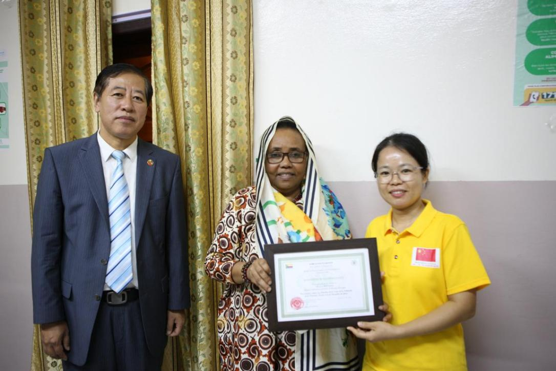 郭志军大使及科摩罗卫生部长共同向卢文君颁发荣誉证书