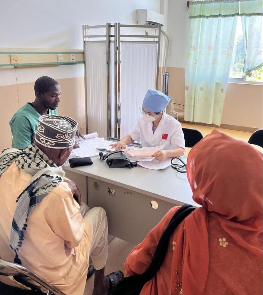 卢文君医生的医者情怀不仅限于国门之内,她更积极响应国家号召,成功入选援外医疗队,于2022年12月远赴非洲科摩罗,执行为期18个月的援非医疗任务。在这个贫穷落后的东非岛国,她直面语言障碍、文化差异和物资匮乏等重重挑战,却始终坚守医者初心,用精湛医术与温暖爱心为当地民众筑起一道健康长城。工作期间,她接诊患者逾一千三百余人次,收治住院病人百余例,成功抢救危重症患者十余例。针对当地高发的高血压、糖尿病及风湿性关节炎等慢性疾病,她创新推行“防治结合”诊疗模式,不仅提供精准治疗,更建立起系统化健康管理档案,通过定期随访监测和健康宣教,切实推动“从治病为主转向防病为先”的理念落地生根。为提升医疗可及性,她深入偏远村落开展义诊,普及健康知识,并捐赠药品,让医疗关怀惠及每个角落。此外,卢文君医生还肩负着为科摩罗外交官员及中资机构人员提供医疗保障的重任,为中科友谊与合作深化贡献了坚实力量。