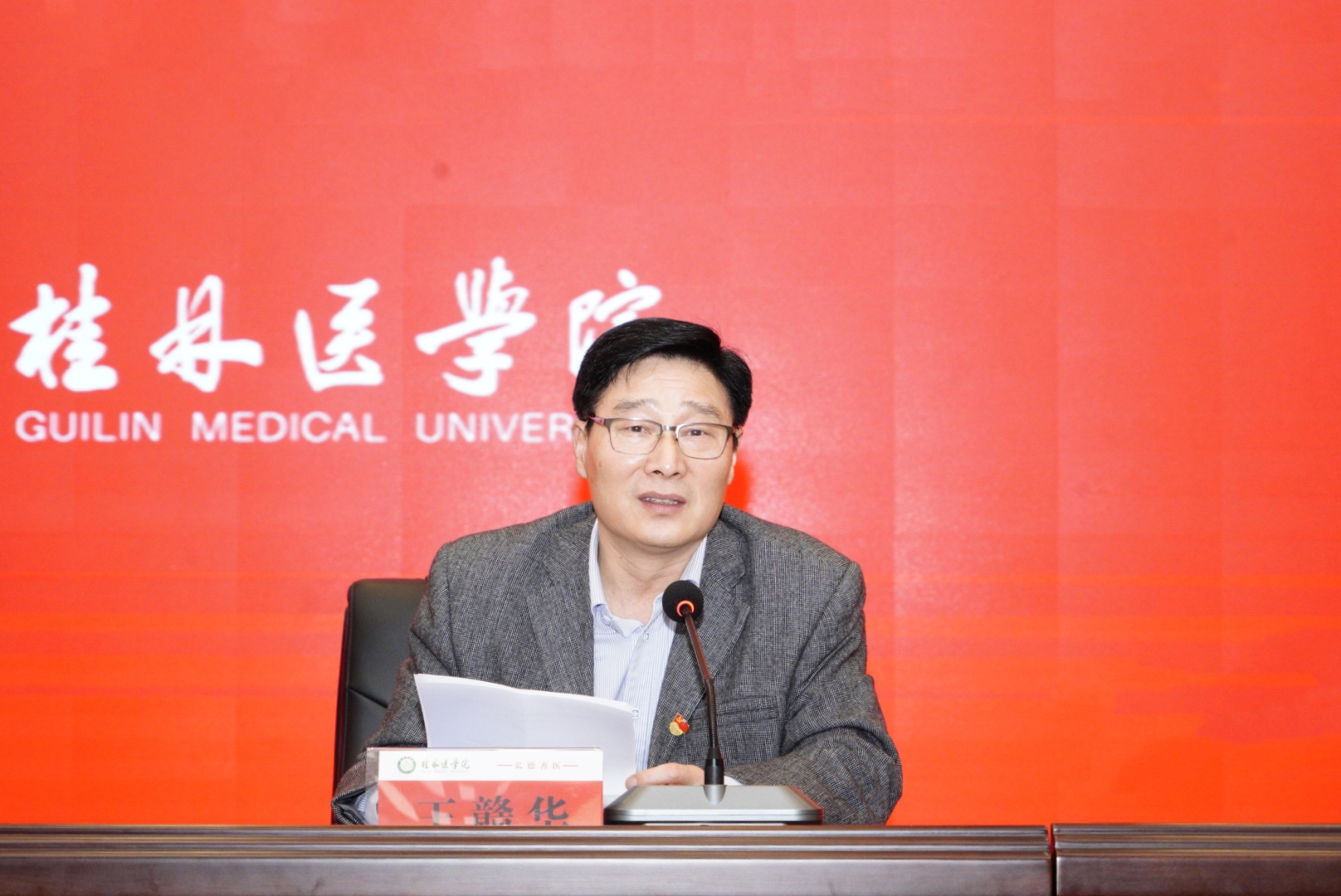 会议以视频形式召开。全体中层干部,学校党史学习教育领导小组及下设工作机构全体成员,校本部二级党组织组织员、党支部书记,马克思主义学院全体教师,全体辅导员及学生代表在临桂校区教学北楼一楼报告厅主会场参加会议。离退休党委、附属医院(临床医学院)党委、第二附属医院(临桂临床医学院)党委、附属口腔医院(口腔医学院)党总支组织员、党支部书记在分会场参加会议。