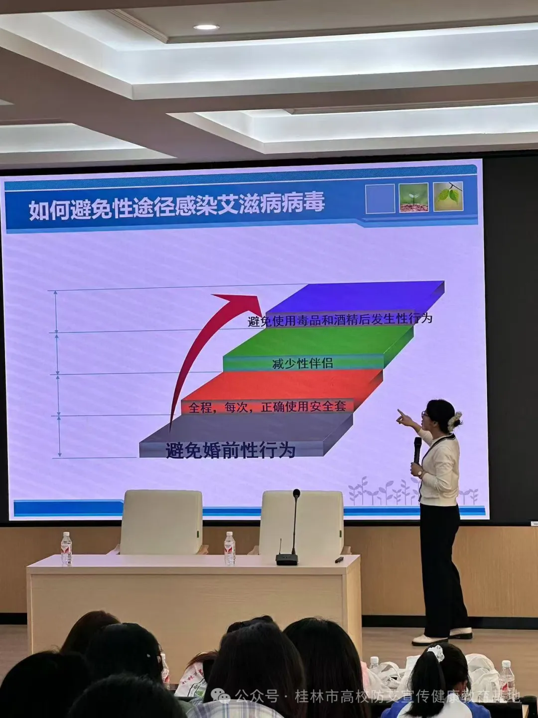 王娜老师谆谆善诱,以生动幽默、诙谐有趣的语言和同学们互动,让同学们对预防艾滋病形成了更深刻的认识。通过本次讲座,同学们的自我防护意识得到显著增强,对艾滋病、毒品、性与生殖健康知识有了更加全面科学的认识,懂得如何更好地健康成长。桂林市高校防治艾滋病宣传教育基地在桂林市卫健委指导下后期将常态化深入大中专院校校园开展防艾系列活动,为构建健康、和谐、安全校园环境贡献力量。