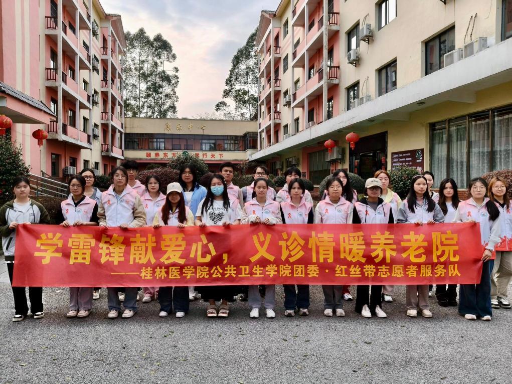 2025年3月22日,桂林医科大学公共卫生学院红丝带志愿者服务队走进临桂幸福家园养老院,开展了一场以“义诊献爱心,情暖养老院”为主题的社区义诊活动。此次活动旨在为老人提供健康关怀,普及健康知识,弘扬雷锋精神。