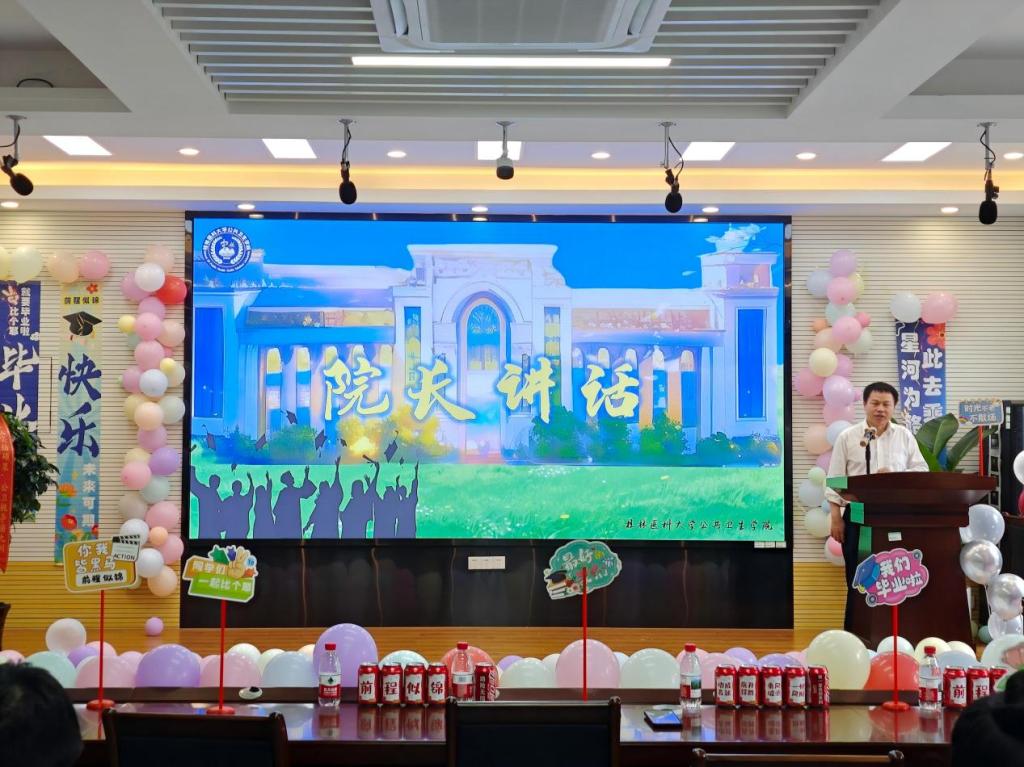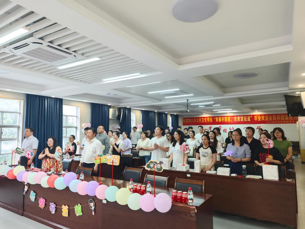 蝉鸣六月,栀子花开,为欢送2025届硕士研究生毕业生,6月23日上午,公共卫生学院在学院行政楼217室举办了“韶光永熠,未来可期”——2025届硕士研究生毕业欢送会。学院领导、教师代表、班级辅导员和毕业班同学参加了此次活动。