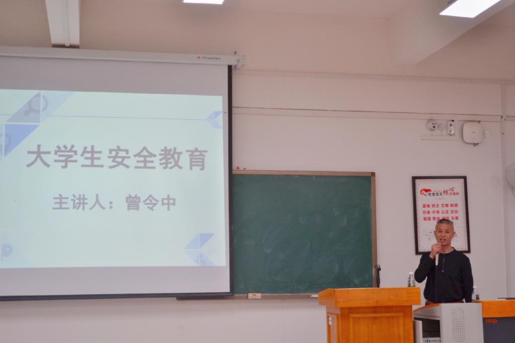 为普及安全知识,帮助新生融入大学生活。公共卫生学院2020级预防医学本科班、2020级卫生检验与检疫本科班、2020级食品卫生与营养学本科班于2020年10月29日晚上19:00在临桂校区N104举行了大学生安全教育课。本次由桂林医学院院办车队队长曾令中授课。
