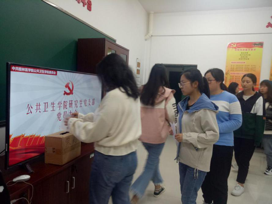 公共卫生学院研究生党支部于2020年9月1日成立。为完善支部委员会组织架构,履行支部日常工作职责, 10月17日晚19:00,我支部于公共卫生学院行政楼309党员之家召开支部党员大会,补选支部委员。大会由组织委员韦淑丹同志主持,支部22名党员出席会议,1名党员因事因病请假,部分积极分子列席。