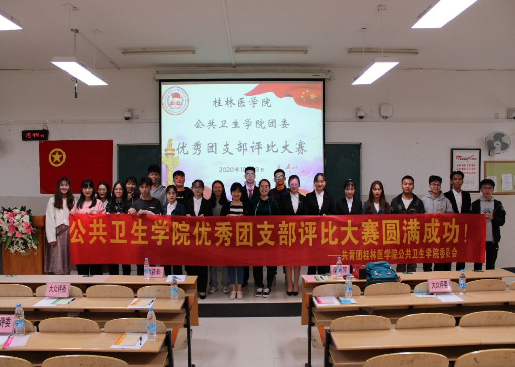 共青团桂林医学院公共卫生学院委员会于2020年10月18日下午3点在教学南楼S101成功举办2019-2020学年优秀团支部评比大赛。公共卫生学院团委副书记徐益彩、公共卫生学院学工办李艳萍出席本次活动。