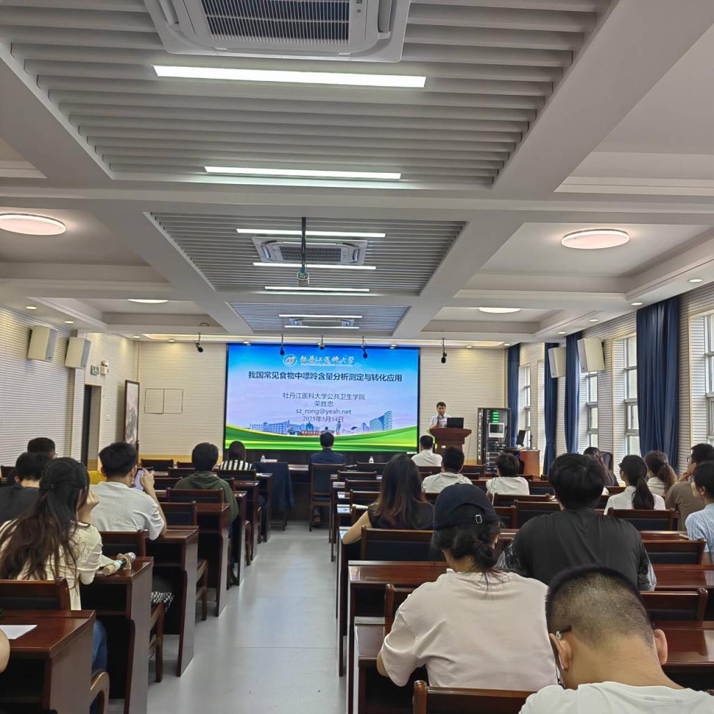 值此我校九十周年华诞之际,5月14日下午,牡丹江医科大学公共卫生学院荣胜忠教授受邀莅临我院,在217学术报告厅举办专题学术报告。讲座由公共卫生学院院长曾怀才教授主持,学院百余名师生到场聆听。