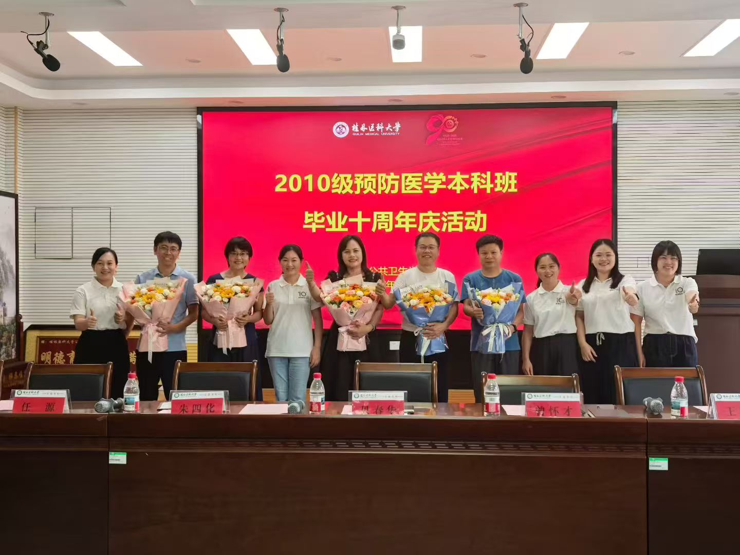 9月13日,公共卫生学院2010级预防医学专业校友怀揣对母校的眷恋与同窗的思念,从全国各地汇聚母校,举办毕业十周年聚会,共忆青春岁月,畅叙师生情谊。公共卫生学院党委书记贝春华、院长曾怀才、党委副书记朱四化、原2010级预防医学本科班辅导员任源、教师代表李晶晶、王程强、返校校友以及在校生代表参加座谈会。