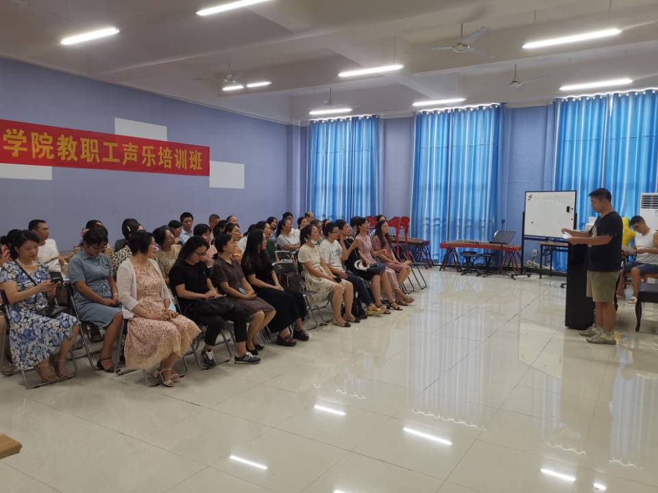 为进一步丰富教职工的精神文化生活,提高教职工的艺术文化素养,9月15日,由校工会举办的教职工声乐培训班在大学生活动中心311会议室开班,培训班吸引了来自各分工会60多名教职工声乐爱好者的参与。