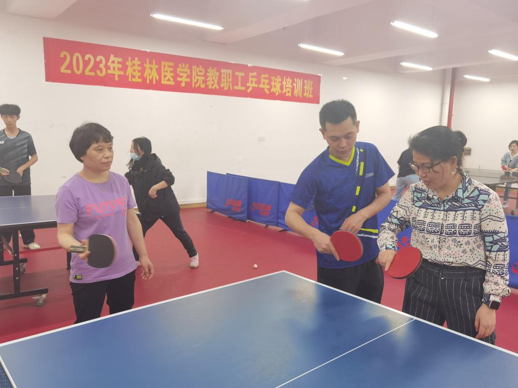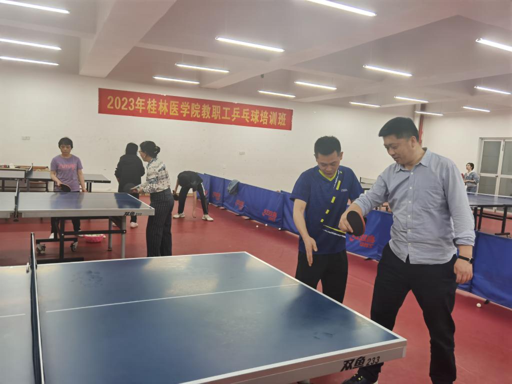 本次培训共设置5周10次课程,每周二、四18:00-19:30在临桂校区大学生活动中心一楼乒乓球馆举行,培训将持续到6月初,欢迎广大教职工积极参加!