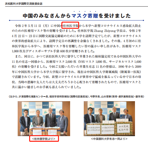 杂志回顾今年我校为浜松医科大学捐赠防疫物资