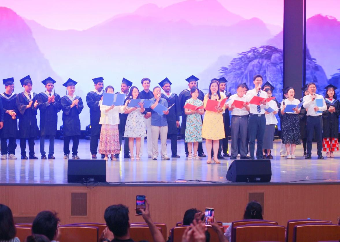 活动尾声国际教育学院全体教职工带来的朗诵《你要写中国》与合唱《走进新时代》将整场活动推向了高潮。整场汇演在欢声笑语中圆满落幕,为留学生们在中国的学习生涯画上了浓墨重彩的一笔。