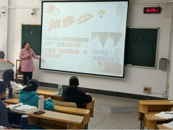 2022年4月20日下午,廖珺老师在东城校区T1-2教室开展了内科护理学教研室本学期第三次课程思政公开示范课——原发性高血压病人的护理。导课时,学生分享了家庭高血压评估及调查后的心得体会,廖珺老师总结为 “赠人玫瑰手留余香”,并启发学生思考“玫瑰”代表所掌握的医学知识和技能,“余香”则是促进病人健康所获得的成就感及病人表达的感谢之情,鼓励学生用所学知识服务社会奉献他人。课堂中,廖珺老师借助雨课堂,融入了多样化的教学方法,丰富了课程思政的开展形式,并以亲切的教态、饱满的精神、简练而有启发性的语言引导学生参与课堂学习活动。本次公开示范课活动有本学院及其他学院教师参与听课,课后教师们针对思政亮点进行了交流和讨论。