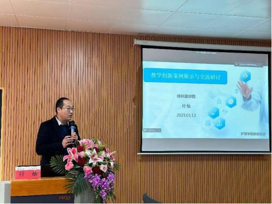 本次研讨会邀请了第二届全国高校教师教学创新大赛三等奖获得者付灿副教授为主讲嘉宾。他从参加教学创新大赛基本步骤及申报材料组成切入,以《医学遗传学》课程为例分享了如何进行教学设计创新,重点介绍了课堂教学实录视频和教学创新成果报告准备的技巧和经验,并就备赛中常见的误区与参会教师进行了深入的交流和互动。
