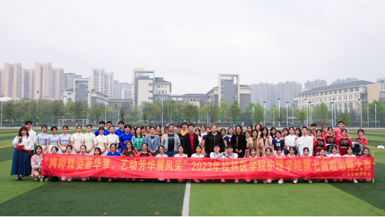 4月2日,护院学院第七届大学生啦啦操大赛在临桂校区北田径场举办。护理学院党委副书记谢勇志,学工办、团委辅导员、班主任和广大同学500余人参加活动。
