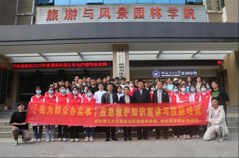 为深入贯彻落实党的二十大精神,夯实基层党建工作基础,强化基层党组织政治功能和组织力,深化党建联盟共建实效,4月7日下午,护理学院党委书记秦媛、副书记谢勇志带领护理学院师生走进桂林理工大学旅游与风景园林学院开展结对共建活动,通过召开座谈会、实地参观学习、开展应急救护知识宣讲与技能培训等方式,进一步凝聚组织合力,推进基层党组织之间优势互补、共同发展。旅游与风景园林学院党委书记王璐、院长吴忠军等党政领导出席座谈会,60名学生接受了应急救护知识技能培训。