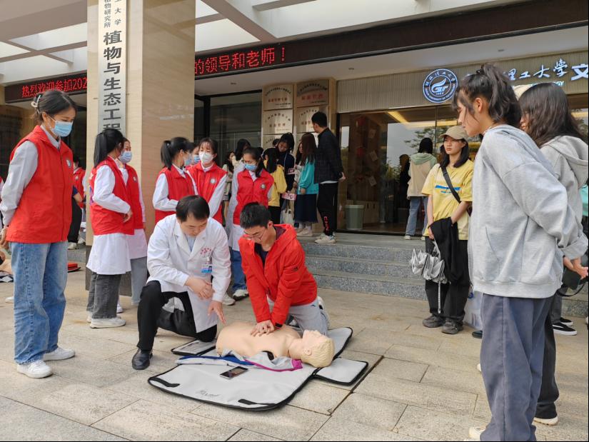 在应急救护知识宣讲与技能培训活动中,护理学院外科护理学教研室唐文帅、李丽娟两位老师首先向培训学员详细讲解了心肺复苏技术、成人及婴儿气道异物梗阻的处理措施、创伤包扎等急救知识和实践技能,随后在公众自救互救技术团队成员的协助下,通过心肺复苏模型等现场为大家演示了心肺复苏、气道异物梗阻、止血、三角巾包扎、绷带的救护操作。在师生团队的指导下,旅游与风景园林学院的同学们分别进行了胸外心脏按压、人工呼吸急救、AED自动除颤仪、海姆立克急救法、包扎法的操作演练,通过积极参与训练,受训同学基本掌握了相关应急救护的操作要领及急救注意事项,达到了预期培训效果。据悉,近两年护理学院党员教师多次带领学生在该学院开展《公众自救互救技术》课程的社会实践教学活动,推动“党建+课程思政”实践教学模式创新,实现全景式互助式思政教育,深受旅游与风景园林学院师生的欢迎。2022年该实践教学课程被评为自治区级课程思政示范课程。