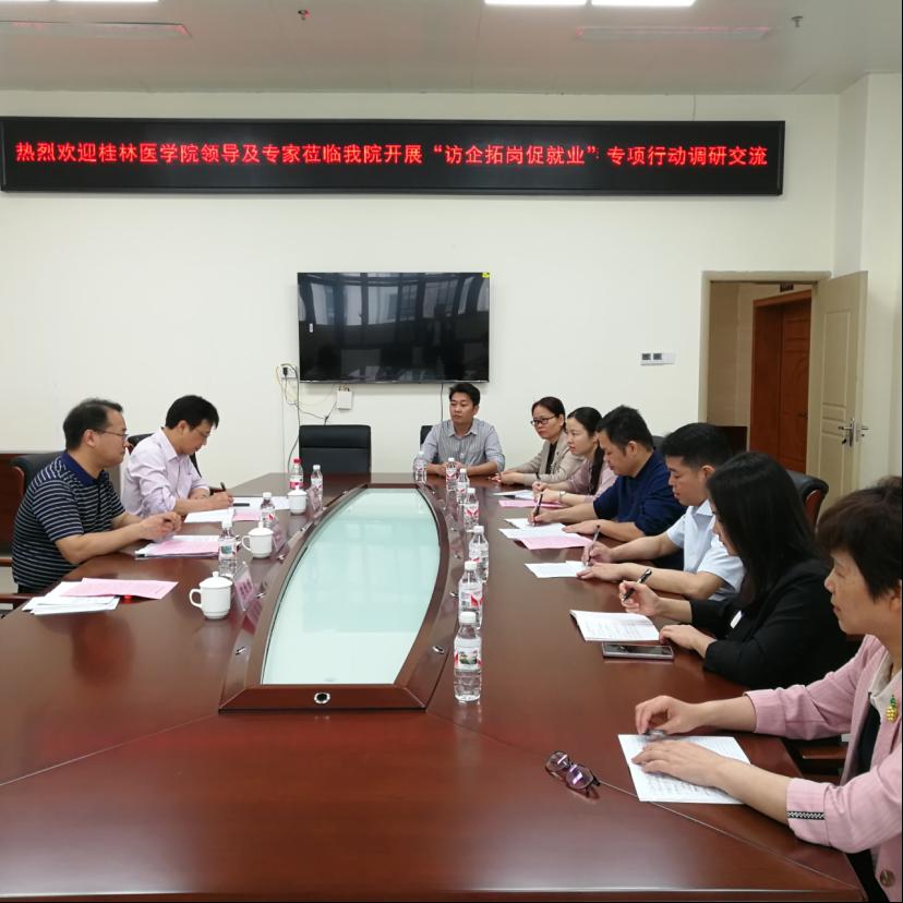 用人单位均就医院发展、岗位需求、桂医毕业生招聘录用和工作发展情况做了介绍,表示希望借助桂林医学院平台,全面加强校院合作,以人才市场需求为导向,提高医院整体学历结构,为医院输送更多优秀的医学人才,促进当地医疗事业的高质量发展。双方还就毕业生推荐、人才培养、科研教学、实习交流、职业素养、就业指导等方面进行了深入的探讨。