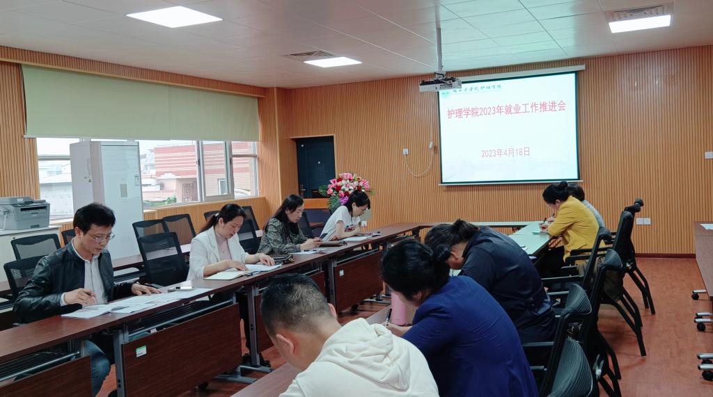 4月18日下午,护理学院2023届毕业生就业工作推进会在东城校区科教楼501会议室举行。护理学院党政领导班子成员、各科室负责人、辅导员出席会议。会议由党委书记秦媛主持。