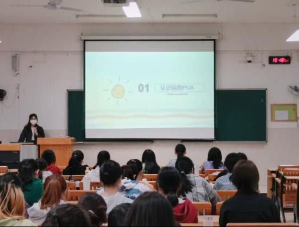 班会负责人向同学们介绍了“自我PUA”的定义,引用了具体的例子来加深同学们对“自我PUA”现象的理解,让同学们明白,意识到问题是解决问题的开端,只有真正了解“自我PUA”的表现模式,才能从根本上战胜自我,战胜自我可以使用“拯救自我”的方法,如练习跟自己积极对话、丰富自己的社交圈、允许自己寻求帮助等等。随后,通过组织大家参与游戏和亲身体验,使同学们学会了放松身心,舒缓压力。