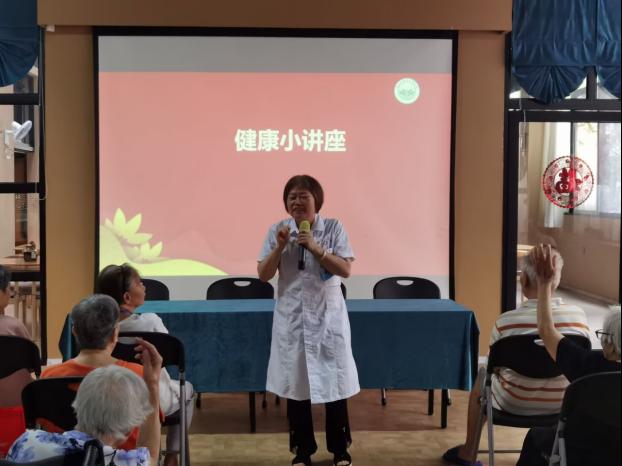 活动伊始,由党员教师李运梅教授进行健康讲座。她以自己是一名即将步入退休生活的老人身份开始讲座,拉近与养老服务中心老人们之间的距离,建立信任感。她从老年人常见疾病的自我管理和日常养生保健等角度展开分析阐述,并通过现场调查,了解大家所患的疾病和存在的困惑,采用通俗易懂的语言从饮食、活动和生活方式等方面进行健康知识宣教。讲座中还穿插了互动环节,并给积极参与答题的老人送上贴心的小礼物。