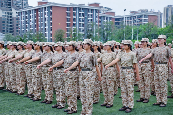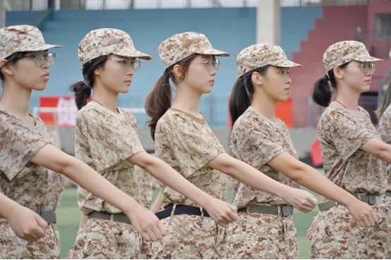 队列训练中,新同学排成整齐的方阵,学习齐步走、向左向右转、立正、稍息等基本动作,在掌握了教官传授的动作要领后,他们动作整齐划一,步伐坚定有力。体能训练中,新同学进行着跑步、俯卧撑、仰卧起坐、引体向上等多项体能的严格训练,虽然每一次训练都让人大汗淋漓、精疲力尽,但是护院学子毫不退缩、全力以赴,用坚强的意志和毅力完成每一项任务。他们以青春的热情和勇气集结在一起,在火热的夏日里毫不畏惧,在风雨的寒冷中无所动摇,身着迷彩服装的他们浑身散发着自信的光芒。
