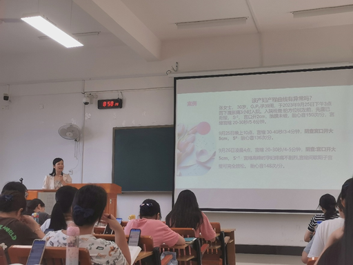 陈思羽老师精心设计教学过程,认真备课,用精美的课件和有趣的教学方法激发学生学习兴趣。陈老师首先运用雨课堂随堂测试题前测同学们对影响分娩的因素及产程知识的掌握情况,达到温故而知新;然后结合正常分娩的影响因素引出异常分娩的概念。通过临床案例逐层引出异常分娩的病因、临床表现分类、治疗及护理,引导学生思考、分享观点。授课中适当的融入思政元素,引导学生理解、尊重和关爱孕产妇。学生认真听讲、积极思考,课堂气氛活跃,教学效果良好。课后,到场观摩的老师们充分肯定了授课的形式和内容,并进行了深入探讨与交流,提出了改进建议。