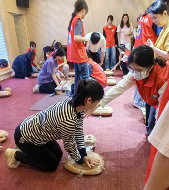 在技能实操环节,学生代表进行心肺复苏术操作示范,很好的巩固了课堂所学知识,把理论知识与实践相结合。社区群众听得仔细、看得认真,摩拳擦掌,积极练习。在老师和学生的指导下,社区群众逐步熟练掌握心肺复苏和海姆立克急救术等急救技能。