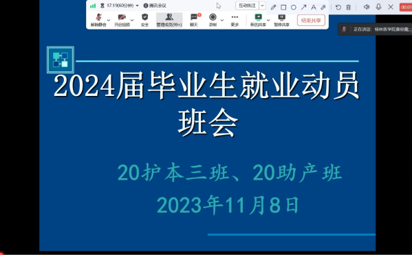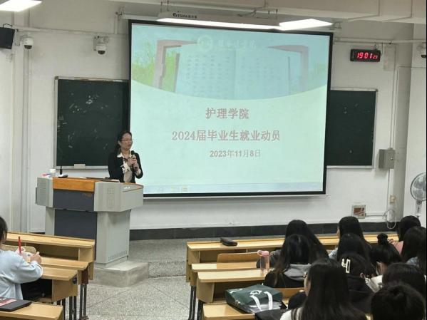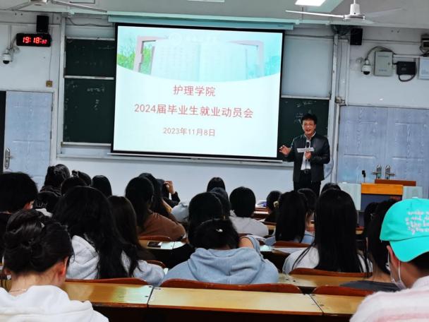 护理学院2024届毕业生就业动员会的召开,既是对就业工作的高度重视,也是关怀学生的重要体现,不仅吹响了毕业生开赴求职战场的号角,还为全体毕业生就业工作打了一剂强心针,对同学们走好迈向社会的第一步具有重要的指导意义。我们相信同学们会更加理性地做出适合自己的职业选择,有目标、有梦想,立足实际,积极就业。