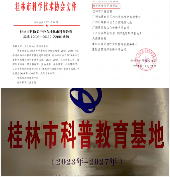 11月27日,桂林市科学技术协会发布《桂林市科协关于公布桂林市科普教育基地》(2023-2027)名单的通知》,共13家单位获认定为桂林市科普教育基地,桂林医学院护理学院也是被认定单位之一。