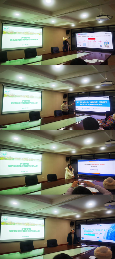 为深入贯彻“以学生为中心”教学理念,旨在深入推动高等教育教学改革,打造教学创新的风向标,1月8日上午护理学院举行第四届高校教师创新大赛初赛及赛前指导。护理学院院长高燕、教研室主任以及部分专任老师参加。