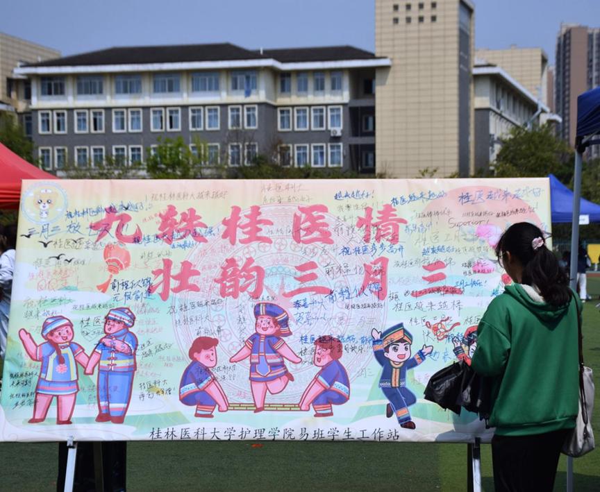 为弘扬民族文化,促进民族团结,迎接90周年校庆,3月23日,护理学院在临桂校区南操场举办了以“九秩桂医情,壮韵三月三”为主题的系列活动,活动由护理学院易班学生工作站承办。