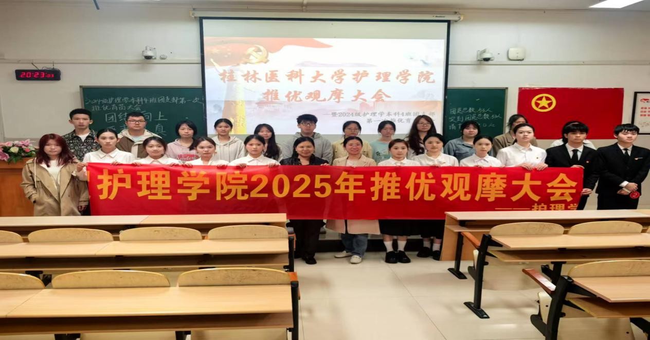 3月23日晚,护理学院2025年推优观摩大会暨2024级护理学本科四班第一次推优育苗大会在临桂校区召开。护理学院教师代表、学校团委学生代表出席会议,护理学院2024级各团支部代表现场观摩学习。