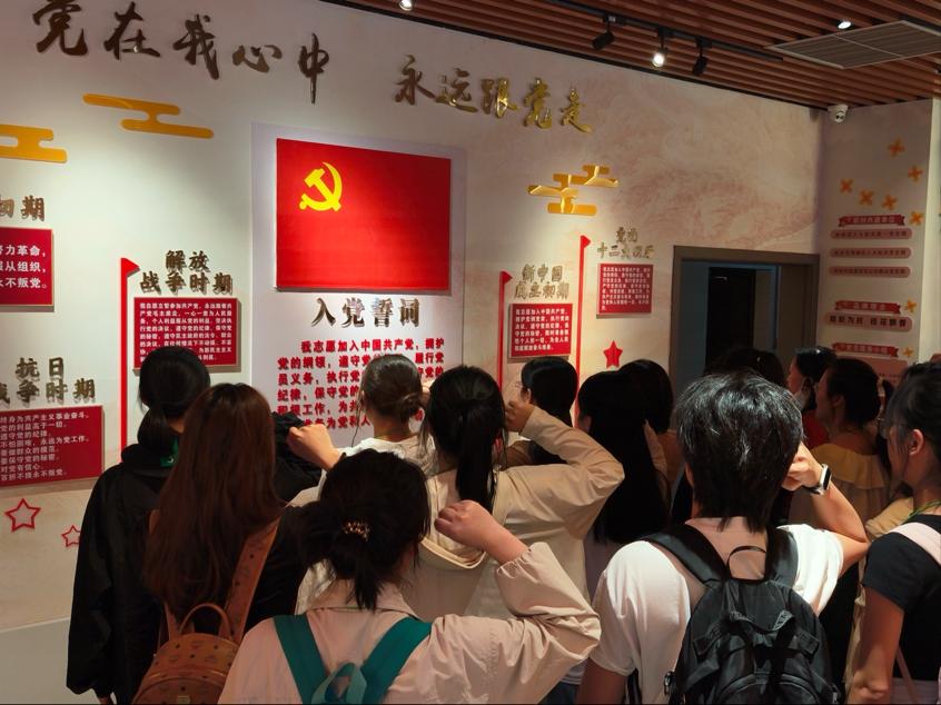 党员们首先来到党史馆。大家沿着中国共产党成立以来的历史脉络,重温了党的伟大征程。在庄严肃穆的氛围中,全体党员面向鲜红的党旗,庄严地举起右手,重温入党誓词,铿锵有力的誓言饱含着党员们对党的无限忠诚和为共产主义事业奋斗终身的坚定决心。