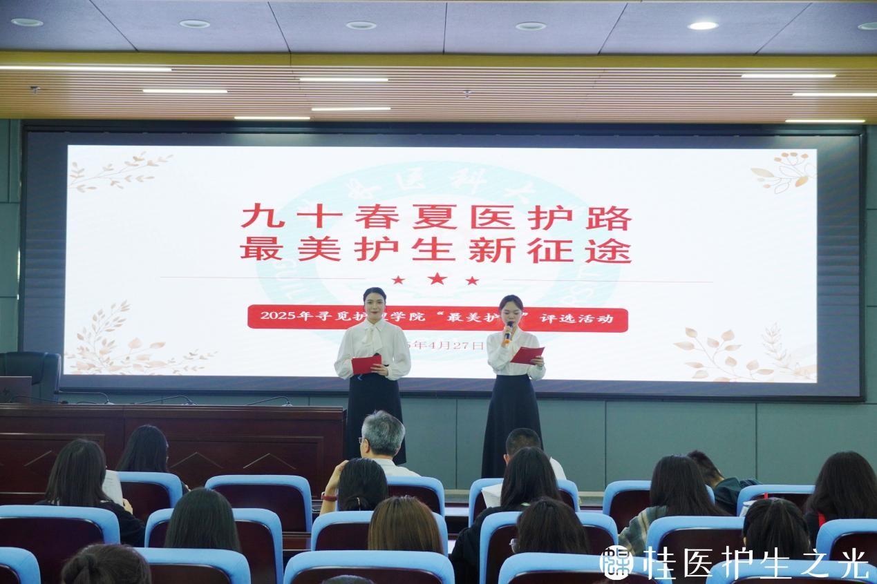 4月27日晚,护理学院“九十春夏医护路,最美护生新征途”——2025年“最美护生”评选活动在临桂校区科学实验中心一楼报告厅举行。护理学院党委副书记谢勇志、师生代表及校团委嘉宾参加评选会,学院14名参评人讲述了他们在桂医护院追梦与成长的故事。