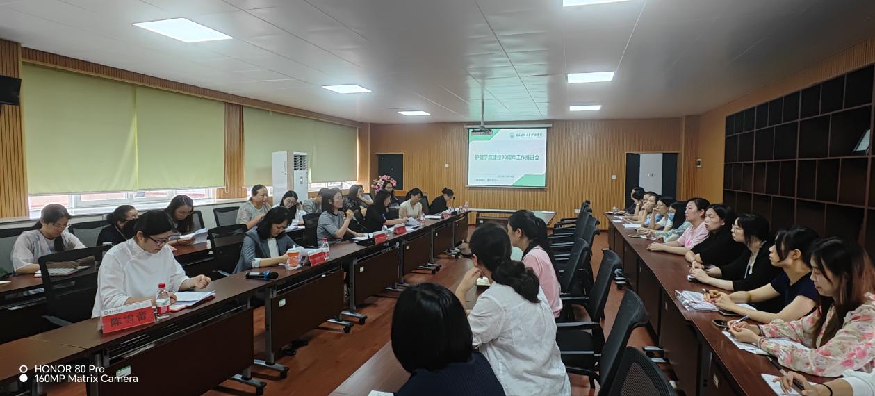10月14日下午,护理学院在东城校区科教楼501会议室召开建校90周年校庆工作推进会,统筹部署校庆筹备关键任务。学院领导班子、全体教职工参会。会议由学院院长高燕主持。