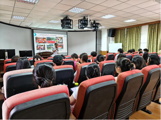 活动中,学生团队分为两组同步开展实践。高校组在何林炎、杨帆老师带领下,面向桂林理工大学的研究生开展系统培训,内容包括徒手心肺复苏术、气管异物清除术以及AED(自动体外除颤器)的使用方法。通过“理论讲解+情景模拟”相结合的方式,帮助学员切实掌握“急救黄金四分钟”的关键技能。