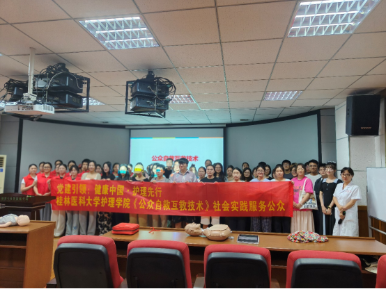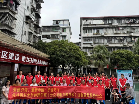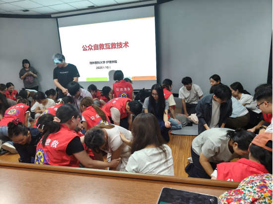 为积极响应“健康中国”战略,推动应急救护知识普及,提升公众自救互救能力,2025年10月14日,桂林医科大学护理学院外科护理学教研室何林炎、杨帆、胡萍、曾维龙四位教师带领学生团队,分赴桂林理工大学与桂林市秀峰区九岗岭社区,同步开展急救知识宣讲与技能培训活动,以实际行动践行“护理先行”的社会责任。