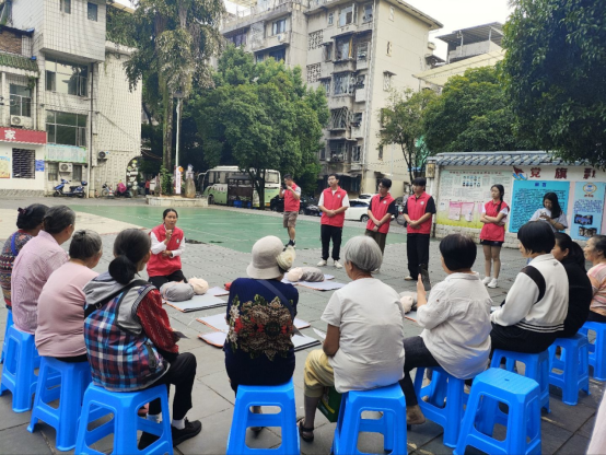 社区组则由胡萍、曾维龙老师带队,深入九岗岭社区,针对居民常见急救需求,重点讲解异物卡喉、心搏骤停等突发情况的应对要点。培训采取集体演示及“一对一”手把手的实操指导方式,指导居民开展海姆立克急救法及徒手心肺复苏的实操练习,让急救技能真正“接地气”、“入民心”。