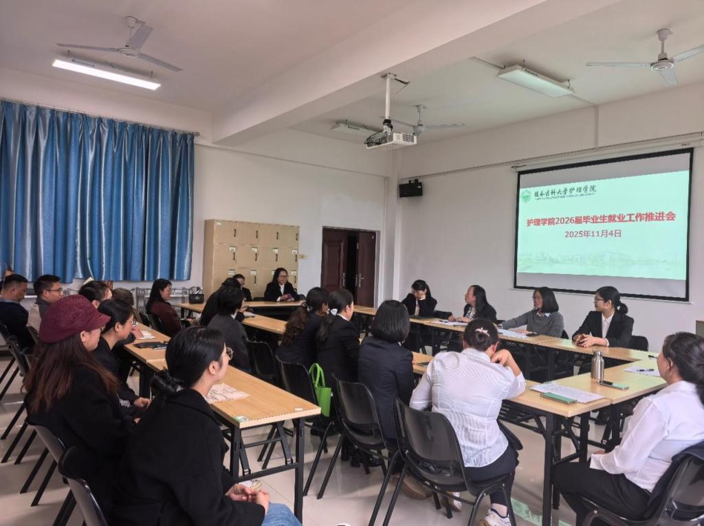 为积极应对当前就业工作面临的挑战与机遇,全面推进毕业生高质量充分就业,护理学院于11月4日召开2026届毕业生就业工作推进会。学院领导班子、院办、教研管理科负责人、各教研室主任及全体辅导员参会,会议由学院党委副书记秦芳主持。