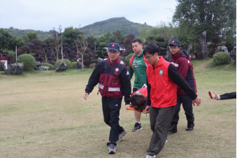 为提升我校护理学本科生对公共卫生突发事件的应急处置能力,增强对批量伤员检伤分类的理解,2025年11月11日下午,桂林医科大学护理学院教工第二党支部何林炎老师带领《公众自救互救技术》社会实践课程的50名学生,前往莲花源农庄开展群体外伤急救演练。活动特邀桂林医科大学第一附属医院自治区级卫生应急医疗救援队的6名队员现场指导。
