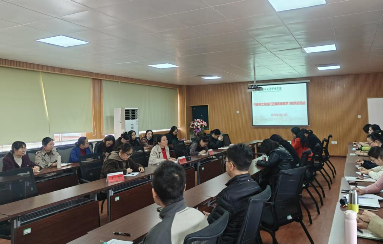 3月13日下午,护理学院党委召开树立和践行正确政绩观学习教育部署会,对学院学习教育工作进行全面动员和安排部署。学院党委书记余想远主持会议并作动员讲话,学院领导班子成员、全体教师党员参加会议。