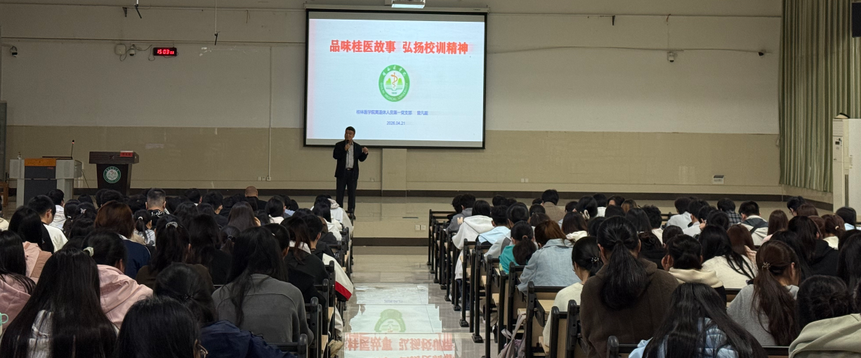 曾书记深耕我校教育事业数十载,退休后仍情系教育、心系青年。讲座中,他结合自身丰富的育人实践与人生阅历,以“品味桂医故事,弘扬校训精神”为主题,兼具了思想的深度和情感的温度,带领大家回溯桂医九十余载峥嵘岁月,重温学校波澜壮阔的发展历程,深情讲述一代代桂医人坚守初心、矢志报国的奋斗故事。