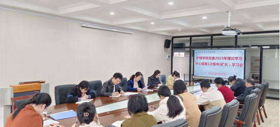 为进一步深入学习和全面贯彻党的二十大精神和党中央决策部署,护理学院党委于4月7日在东城科教楼513-1会议室召开2023年第1次理论学习中心组集中学习(扩大)会。学院党政领导班子、党委委员、组织员、党支部书记参加学习。会议由学院党委书记秦媛主持。
