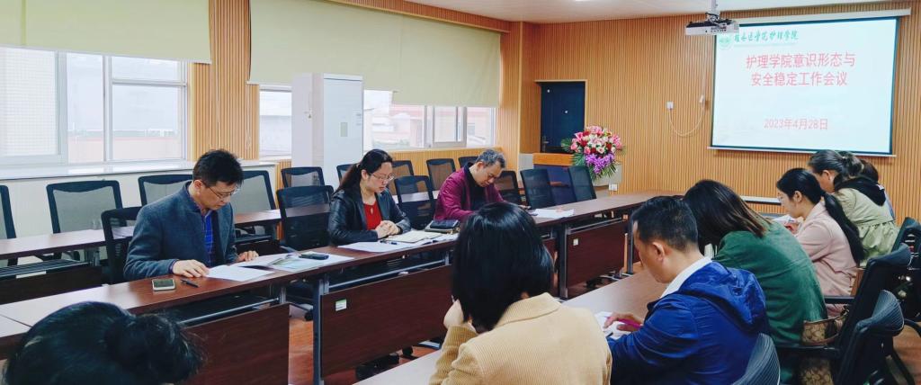 4月28日上午,护理学院在东城科教楼501会议室召开意识形态与安全稳定工作会议。学院党政领导、各行政科室负责人、各教研室负责人、全体辅导员参加了会议,会议由党委书记秦媛主持。